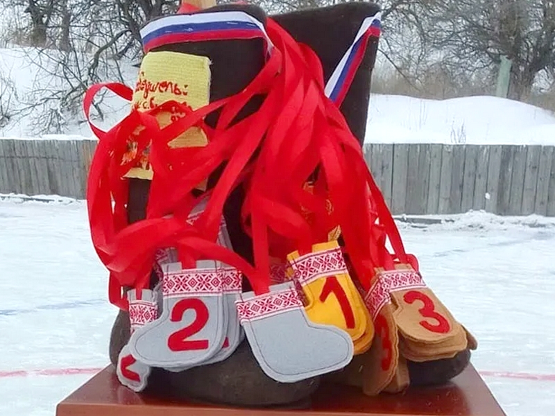 Есть у необычного хоккея и свои награды для победителей. Главная — переходящий кубок, который состоит из огромного валенка на деревянной подставке, и деревянной клюшки с шайбой. Валенок — из овечьей шерсти, расшитый мордовскими национальными узорами. Вес кубка — 7 килограммов. И «медали» тоже необычные – это маленькие войлочные валенки с указанием занятого на турнире места — «1», «2» и «3».
