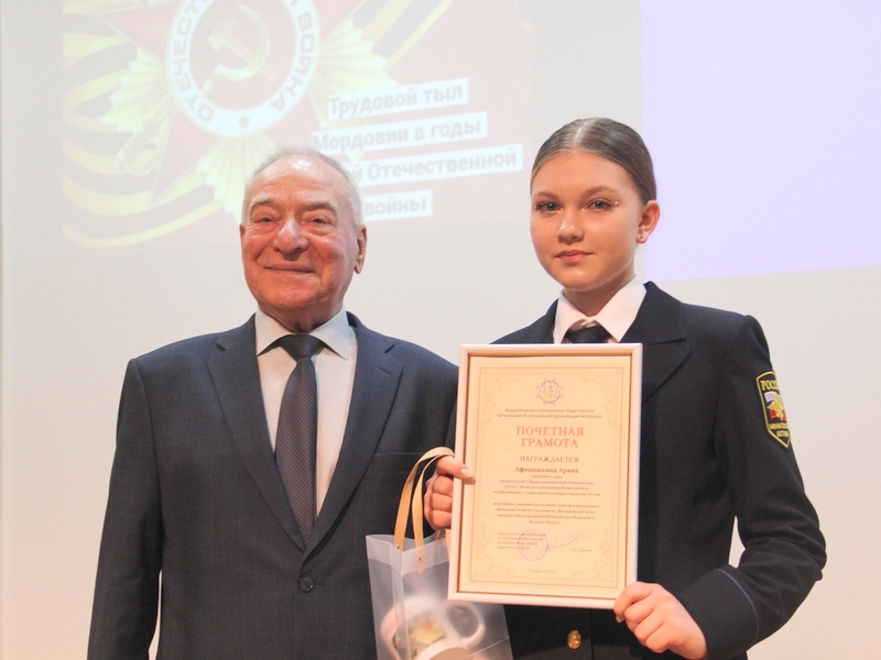Председатель Совета ветеранов Республики Мордовия рассказал ребятам о трудном послевоенном детстве, о том, что необходимо проявлять уважение к людям старшего поколения, к своей стране. Вручил дипломы ветеранам предприятий и творческому активу студентов Средне-Волжского института Всероссийского государственного университета юстиции за личный вклад в сохранение исторической памяти и проведение мероприятия.