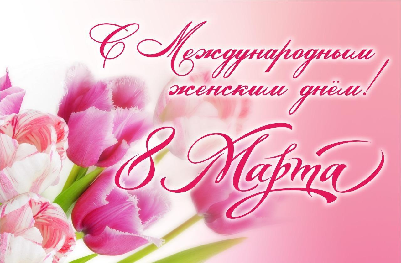 Поздравляем вас с Международным женским Днём – 8 Марта! С днём, когда вокруг так много улыбок, цветов, добрых слов и теплых пожеланий. Желаем вам весеннего настроения, положительных эмоций, крепкого здоровья, благополучия, мира, добра, гармонии во всём.