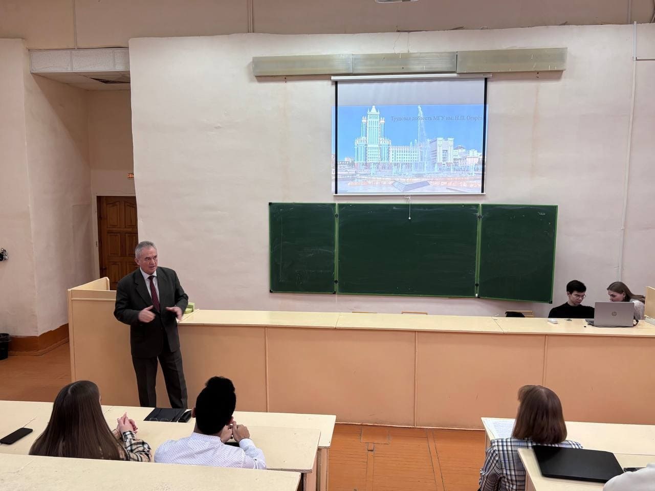 Лекция на тему «Трудовая доблесть Республики Мордовия и МГУ им. Н.П. Огарёва» собрала 17 марта студентов Института электроники и светотехники, чтобы познакомить их с богатой историей трудовых достижений региона и Национального исследовательского Мордовского государственного университета им. Н. П. Огарёва.