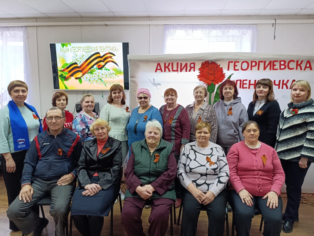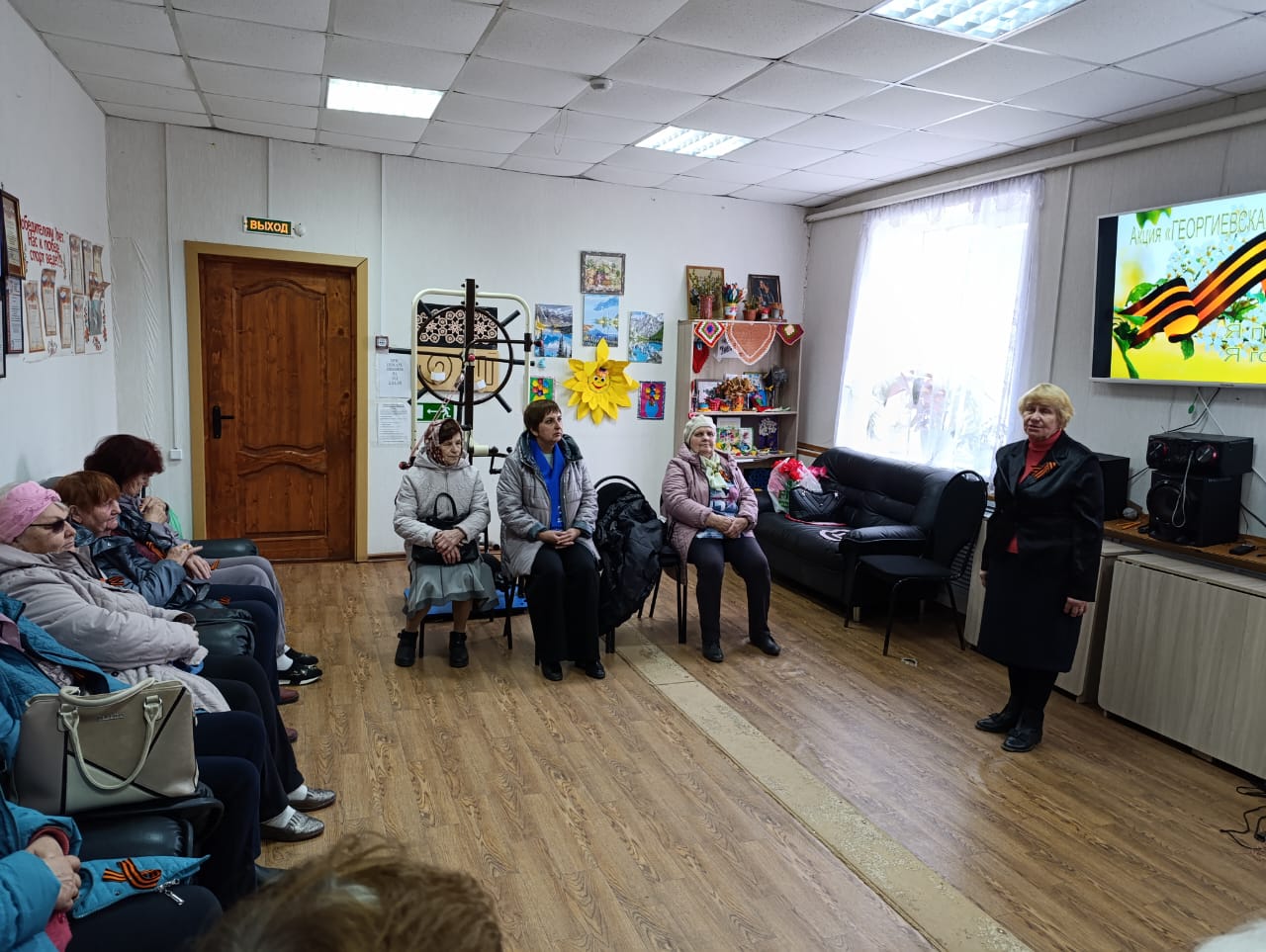 В отделении дневного пребывания района провели торжественное мероприятие «Георгиевская ленточка» – символ памяти и славы!», в рамках которого собравшиеся вели разговор о том, какой ценой русский народ одержал самую великую победу в истории человечества над самым страшным врагом человечества, о традиции и значении черно-оранжевых ленточек, подчеркнув, что георгиевская ленточка - это многовековой символ, такой же, как герб и флаг.