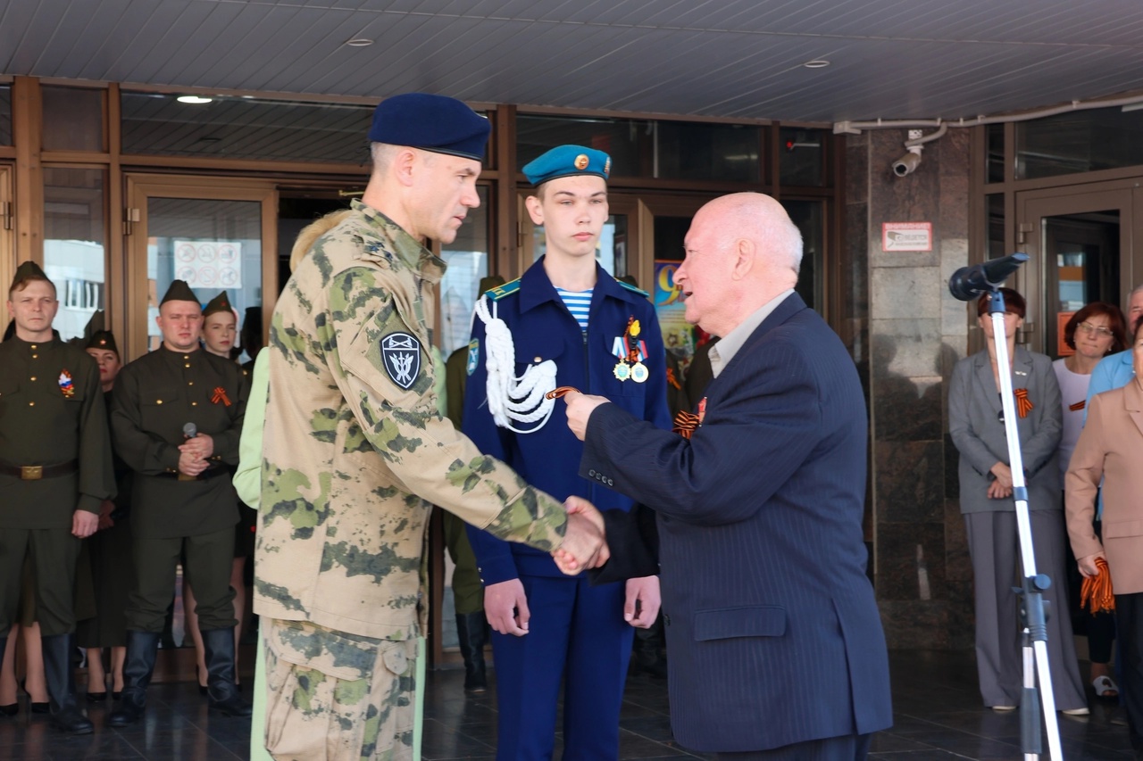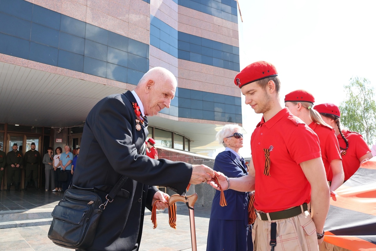 После этого ветераны вручили георгиевские ленты ребятам, напоминая о героизме и мужестве защитников Родины.