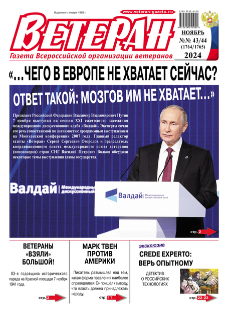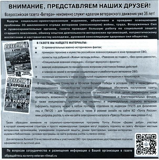 На протяжении 35 лет всероссийская газета «Ветеран» остается социально-ориентированным изданием, достоверно рассказывающим о деятельности ветеранов.