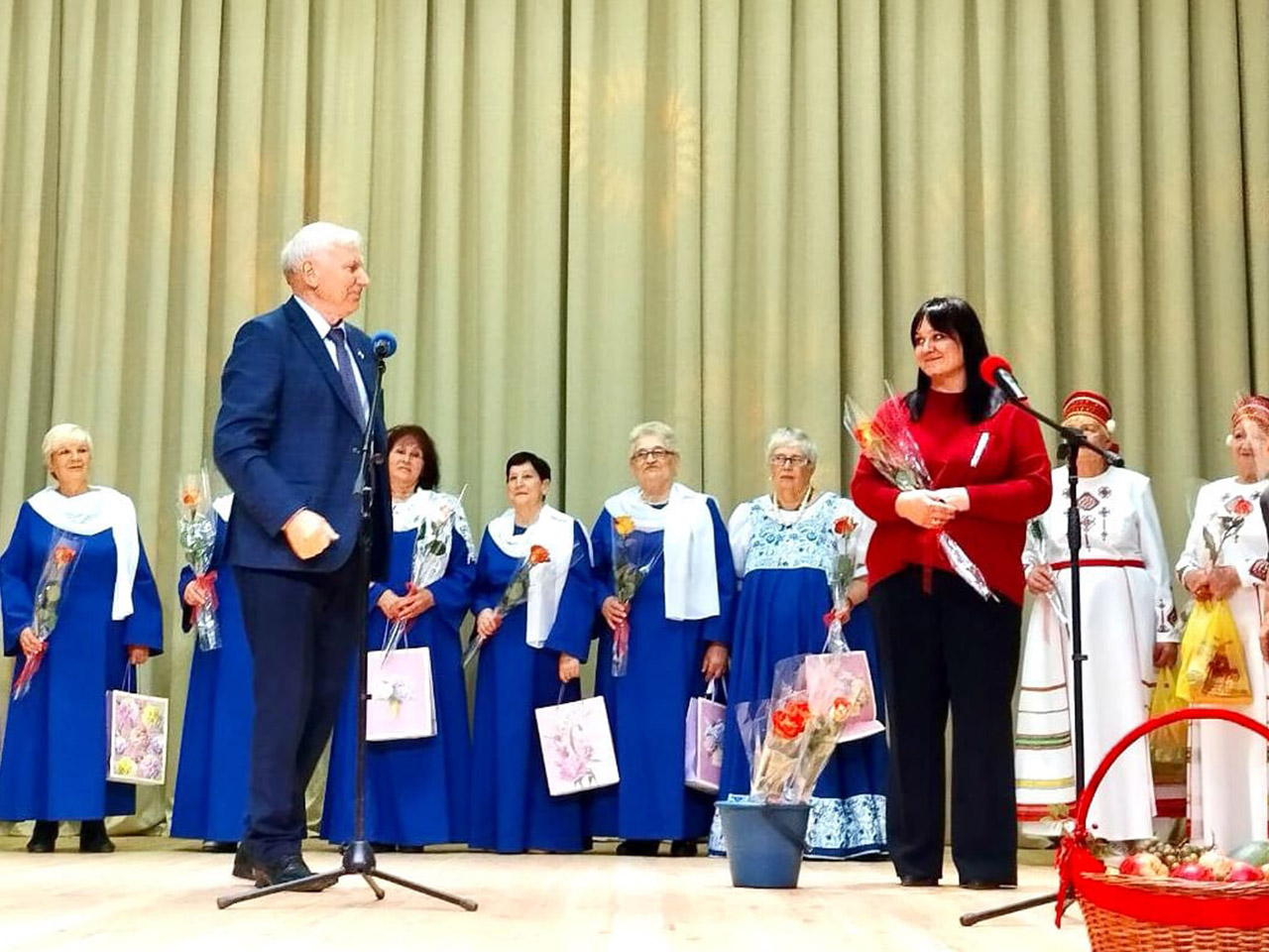 В завершение мероприятия всем участникам концерта подарили цветы и подарки.