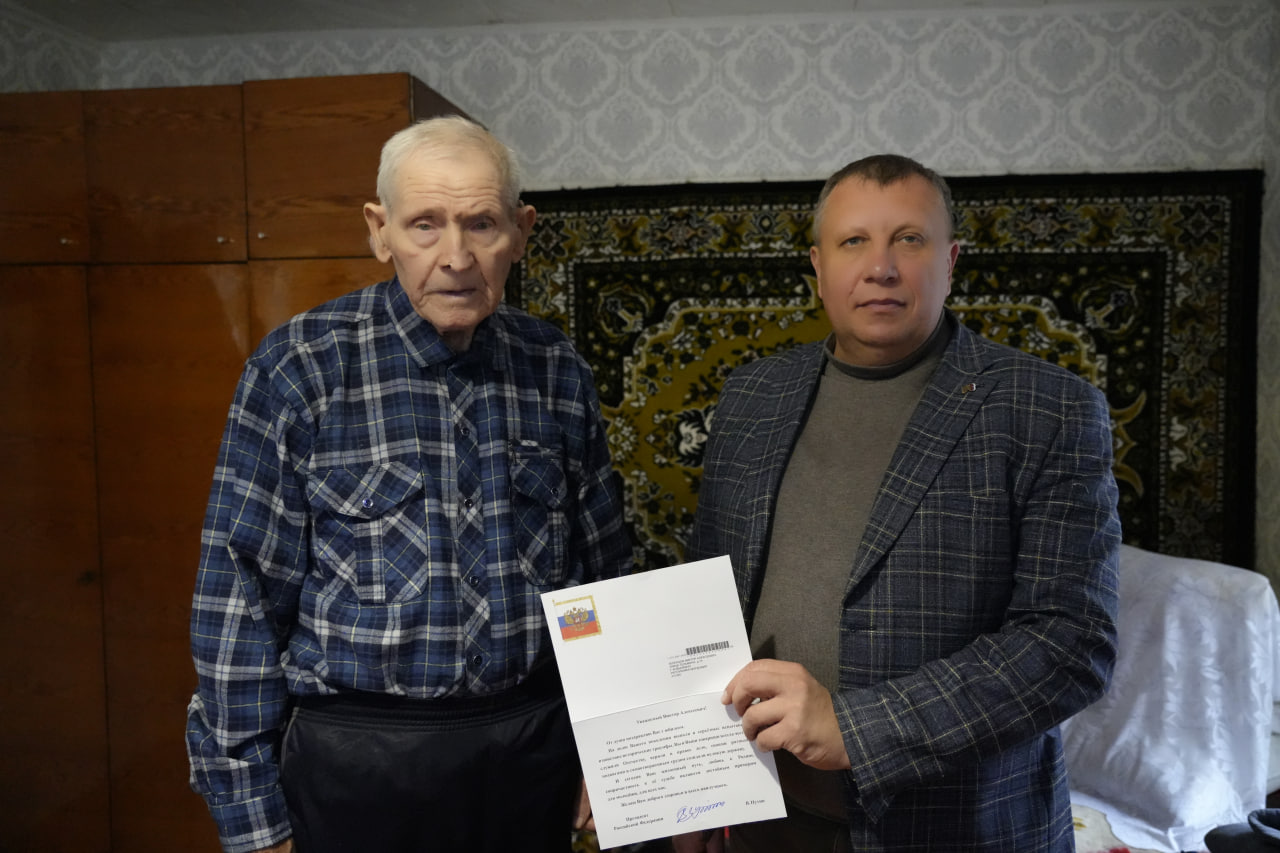 Игорь Николаевич выразил слова благодарности Виктору Алексеевичу за его многолетний и бескорыстный труд, за вклад в воспитание детей, передал поздравительное письмо от Президента РФ В.В. Путина, вручил старожилу города подарок. Высказал добрые пожелания ветерану. Крепкого здоровья, долголетия и бодрости духа нашему имениннику!